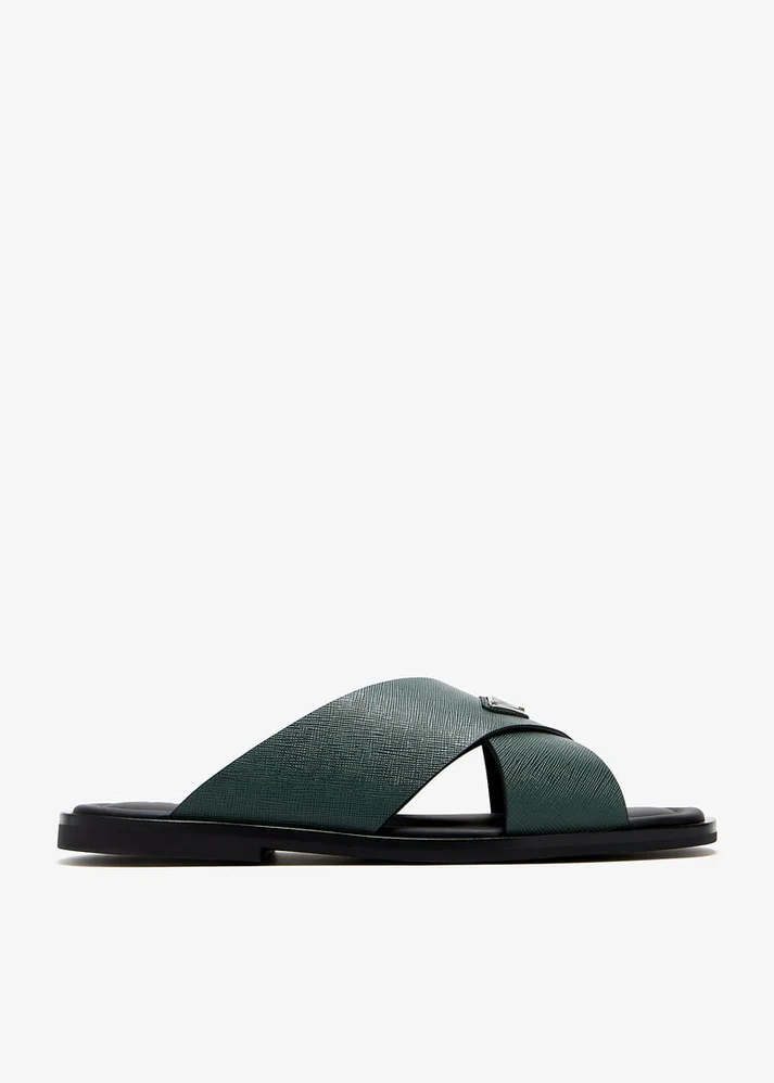 Prada suede crisscross slides emerlad green
